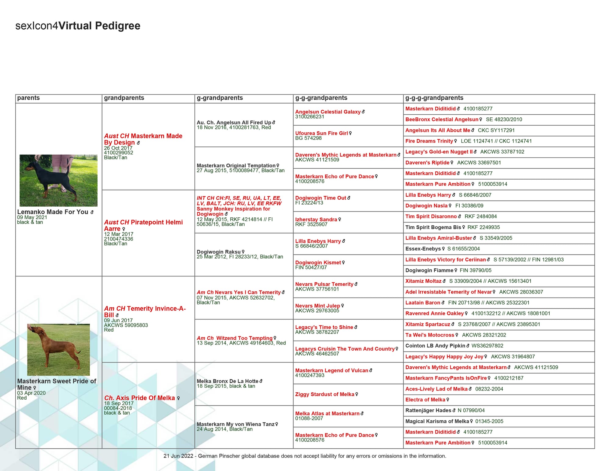 Dam: Ch. Masterkarn Sweet Pride of Mine