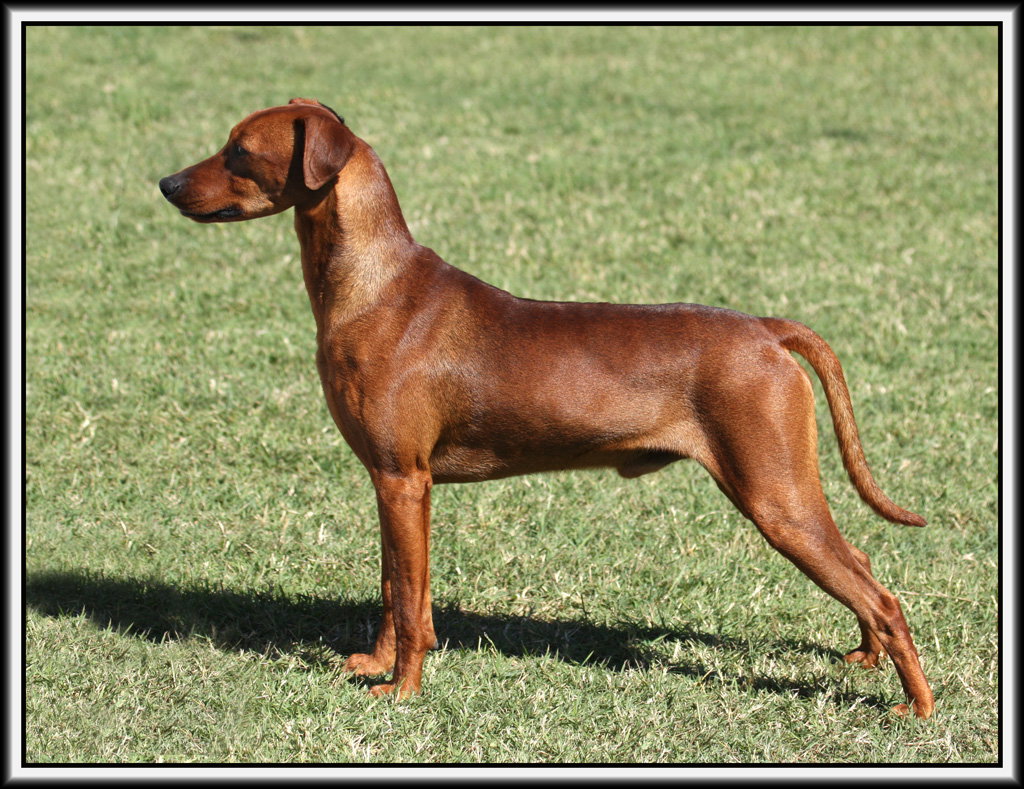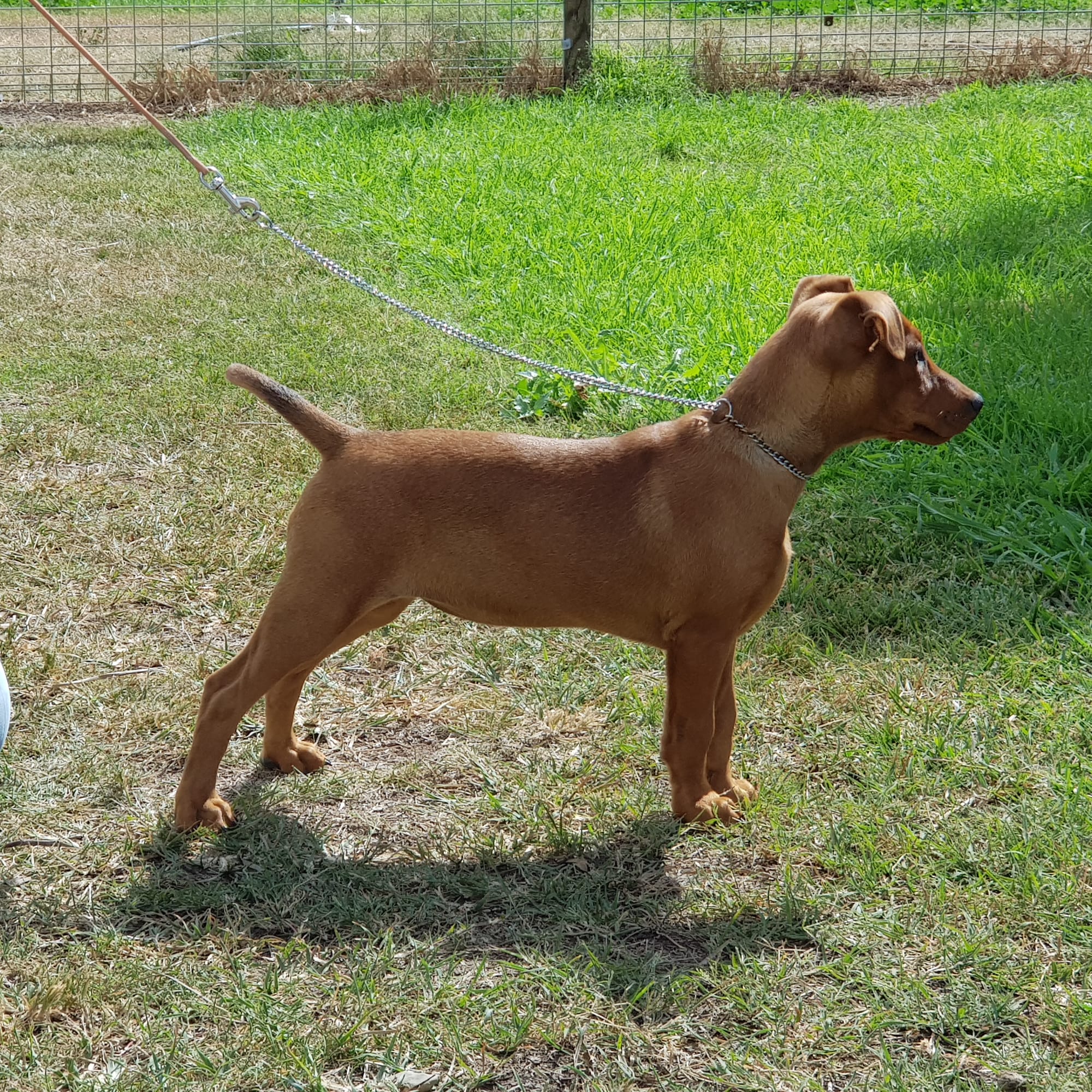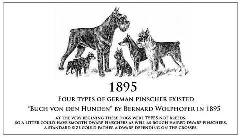 The German Pinscher and the standard Schnauzer were the same breed just the smooth and rough coated pups in the litter. It was the rough coats that became popular and the smooth coated dogs almost became extinct during WWII. The breed in Australia was originally thought it should have been placed in group 2 as they are more terrier in type but the fear was they would then be expected to move like one, which is not correct.