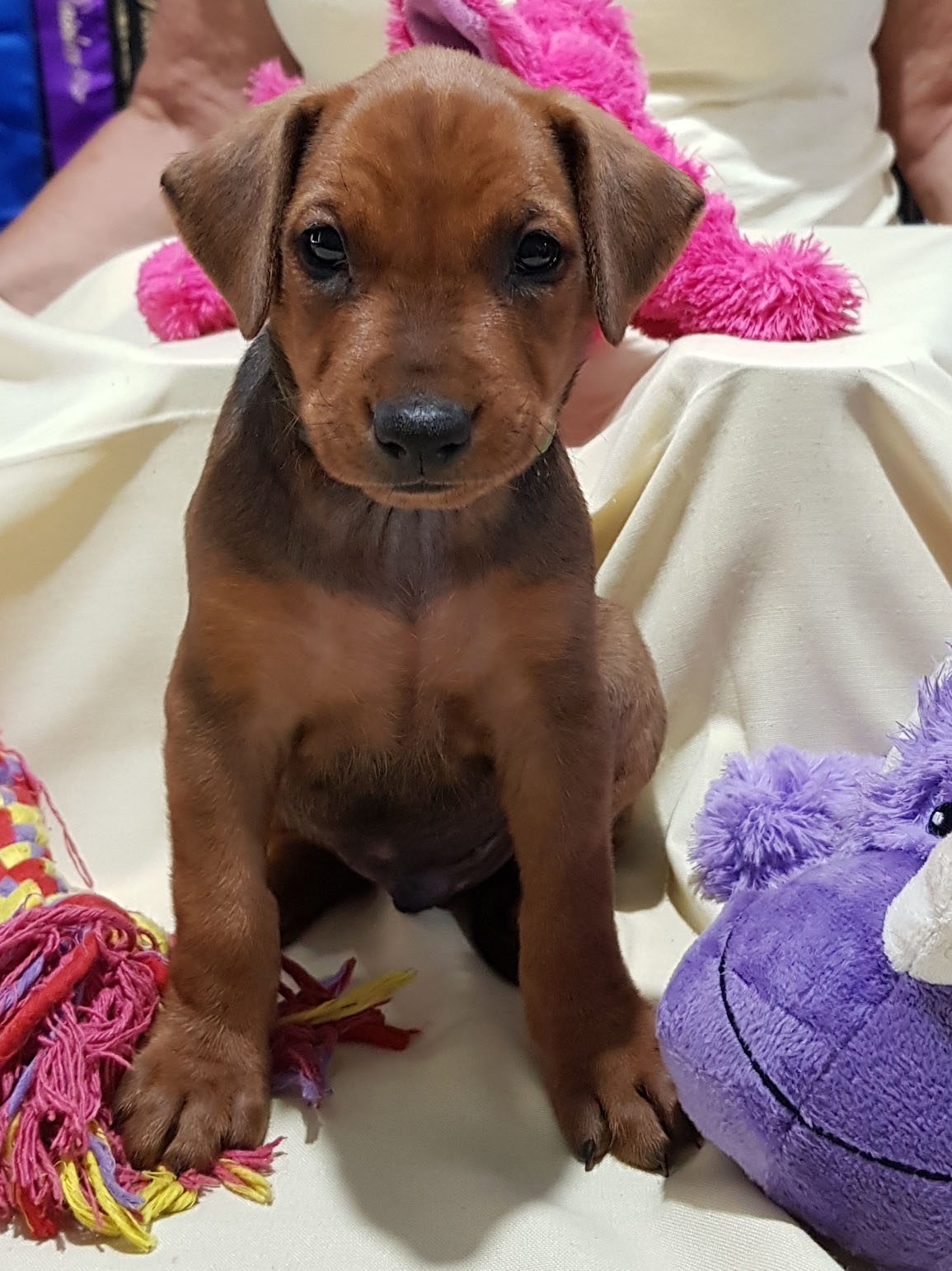 The German Pinscher has a variety of colours that are not included in this breed standard. The wild boar, the Red nosed red and the Chocolate.