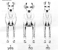 Male animals should have two apparently normal testicles fully descended into the scrotum.