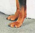 The mouth of the GP was once accepted to have the Pinscher or Level bite. This appears occasionally and is now a fault in the breed. The true scissor bite is the only bite accepted. German Pinschers are best mouthed by their owners, but will tolerate a judges handling if not roughly done.