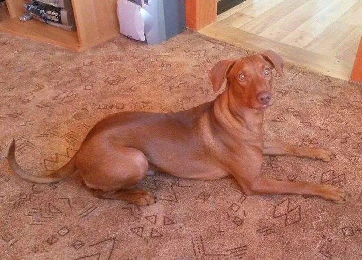 The stag red has black hairs throughout its red hairs but should not be overdone as to create a saddle appearance over the back as in picture below.